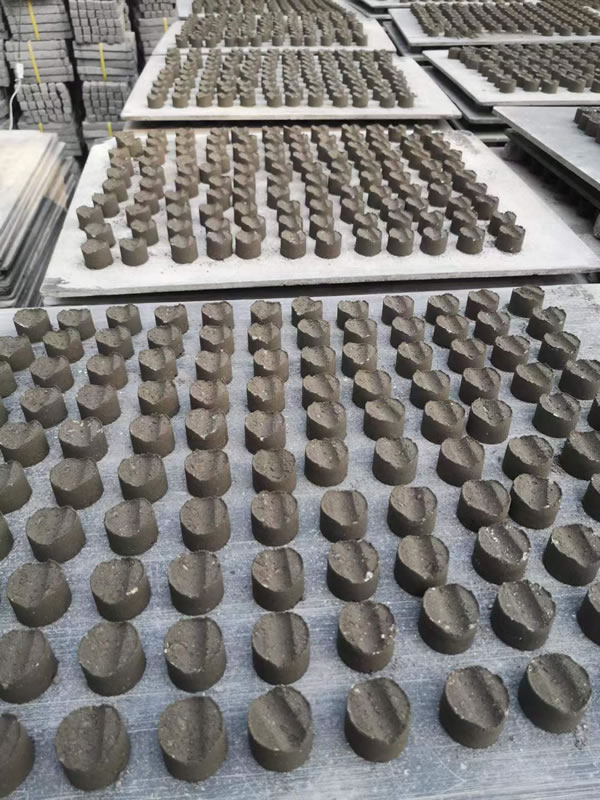 梅花型的垫块,主要是前后有两个平面,四个侧面有凹槽。一个垫块可以做三个规格。锥形的垫块,主要是呈现长方体的形状四边各有圆弧凹槽,四角为凹凸圆弧形。